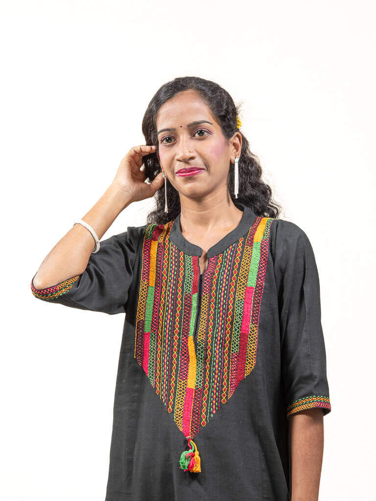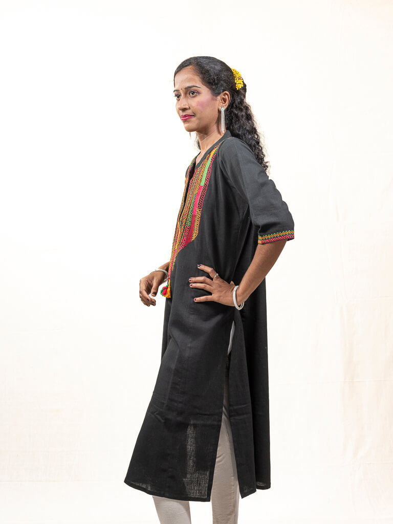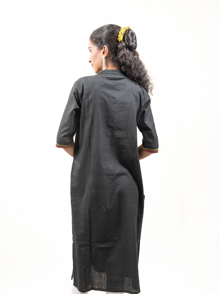 Black khadi cotton kurta