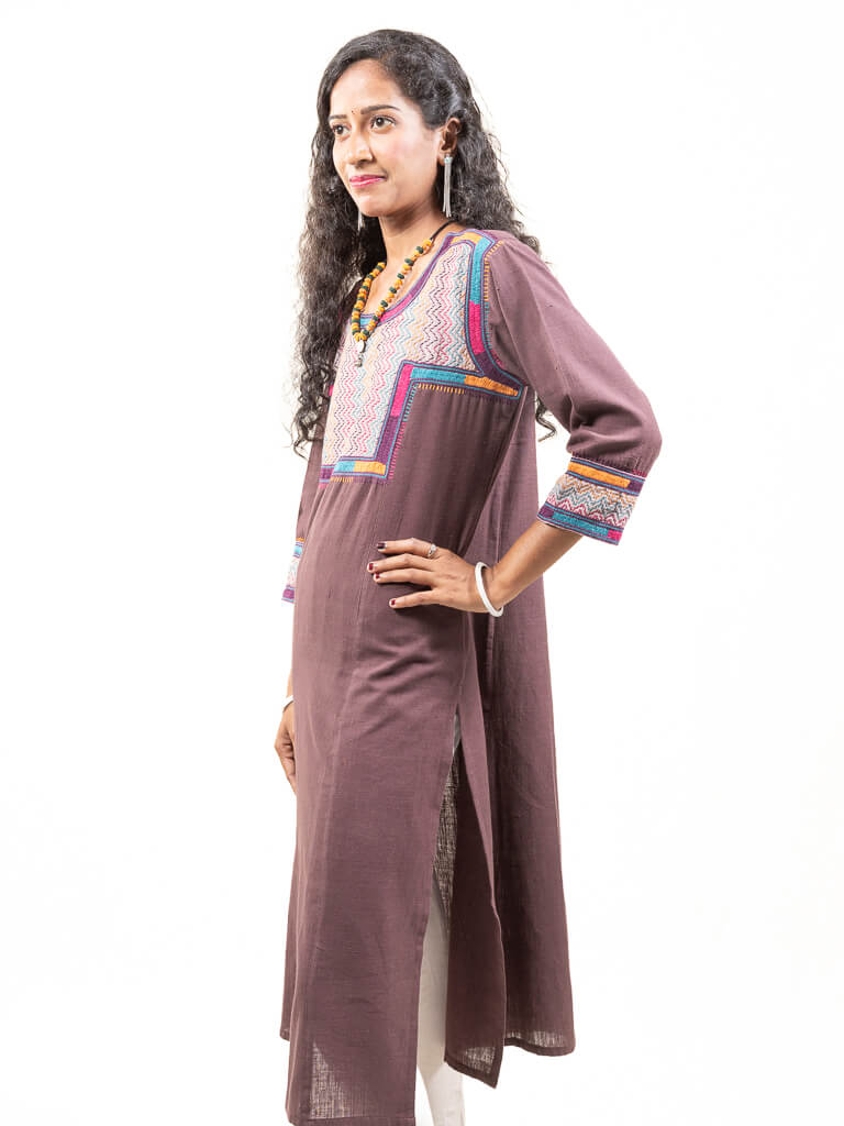 Brown khadi cotton kurta