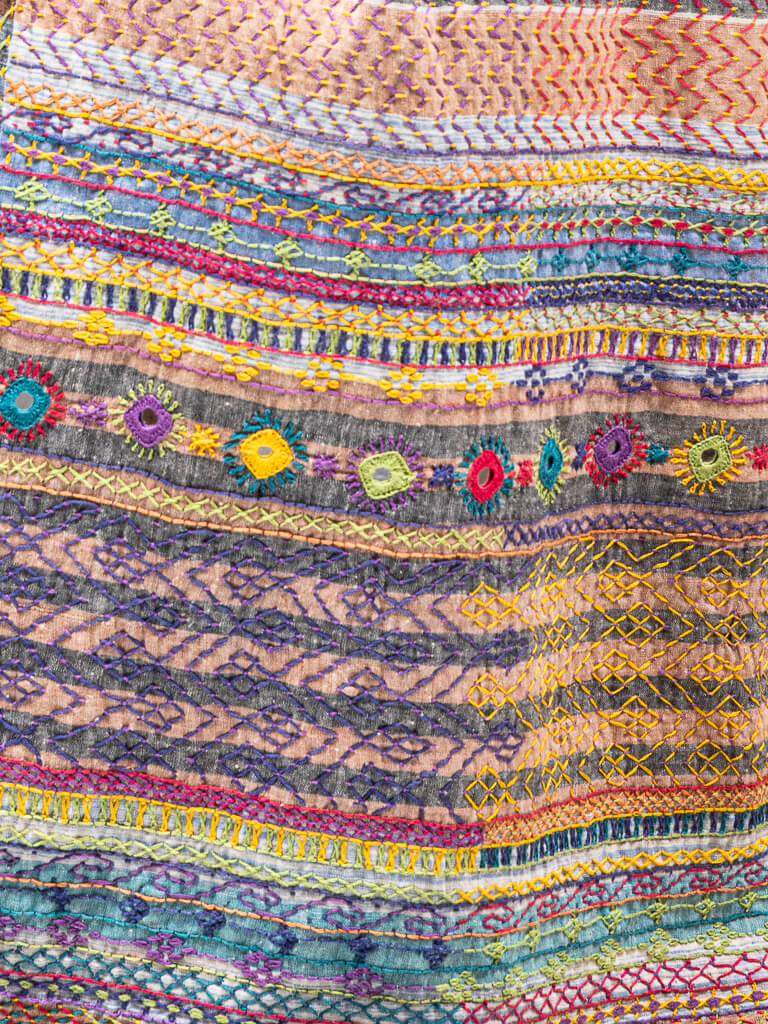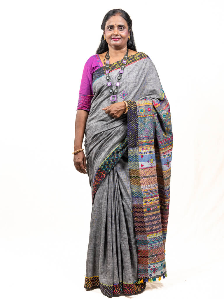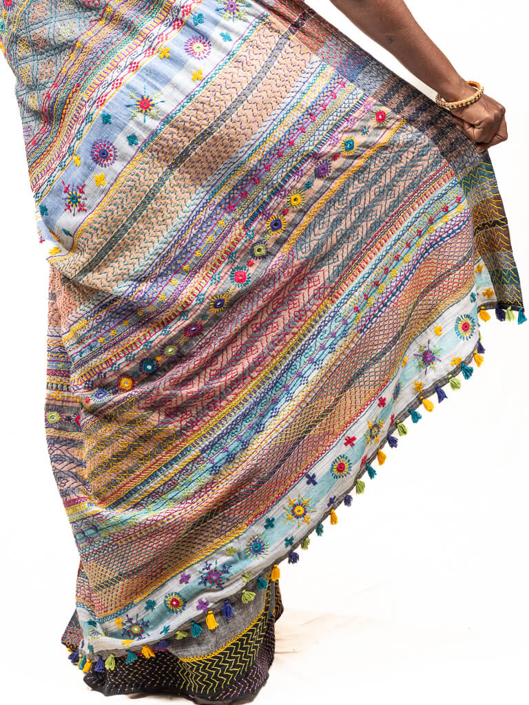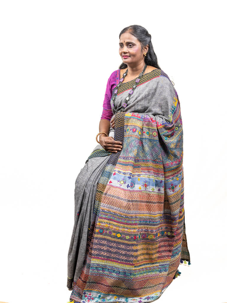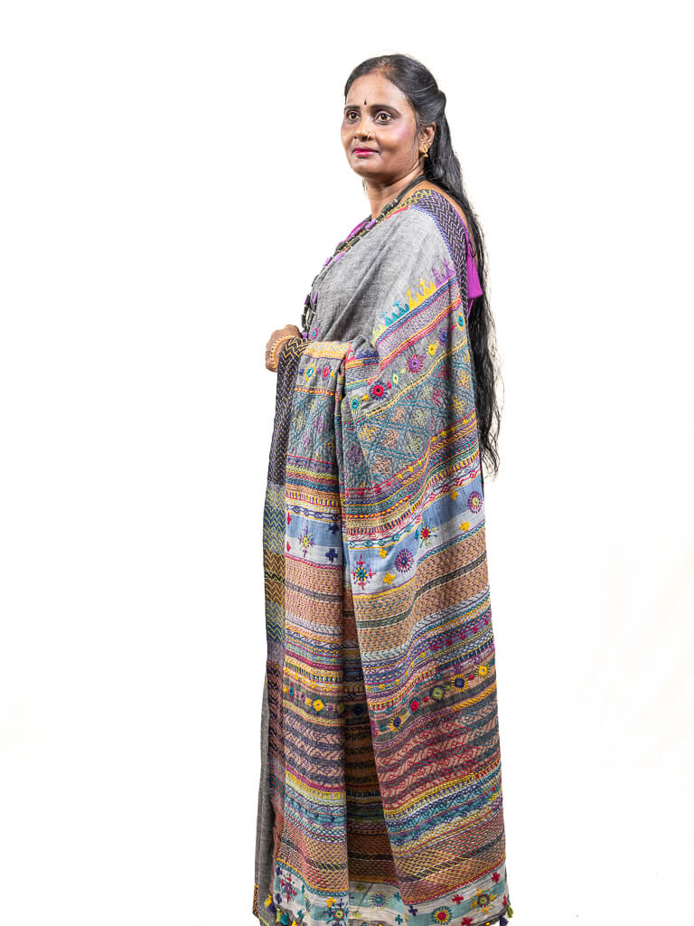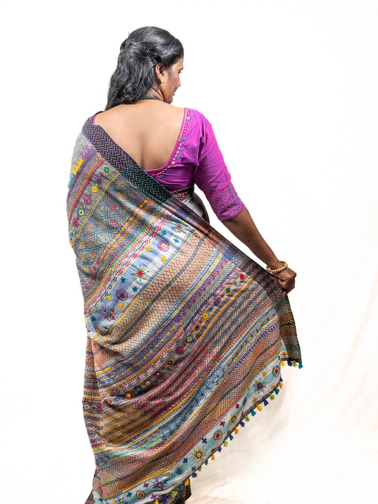 Khadi cotton black by white saree with Sandur lambani embroidery