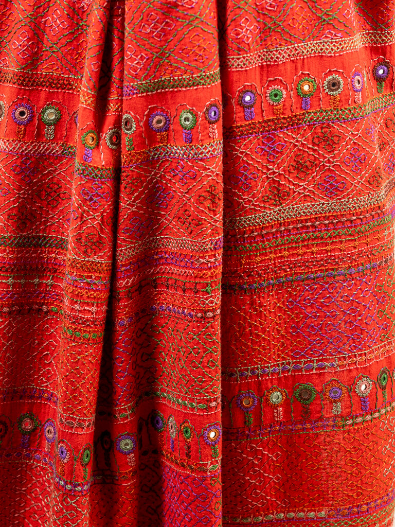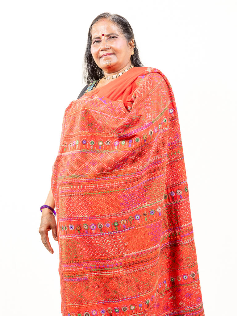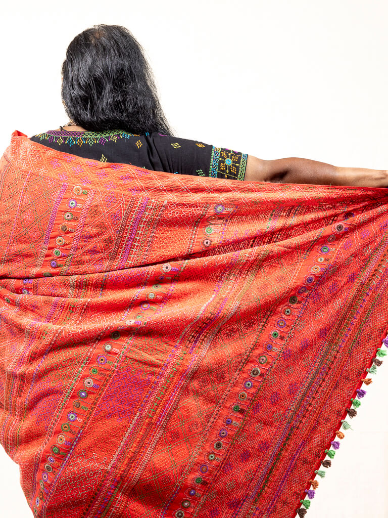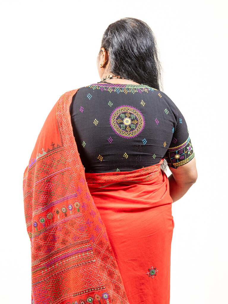 Khadi cotton red saree with Sandur lambani embroidery