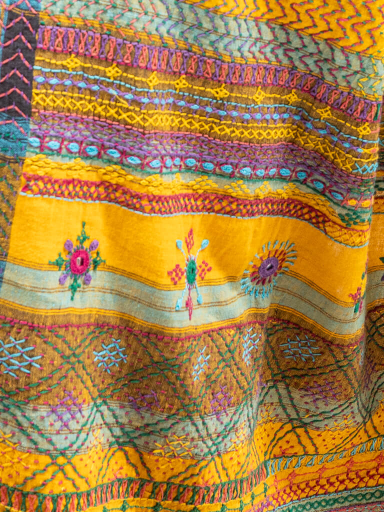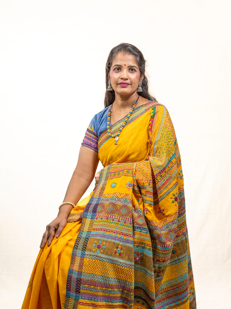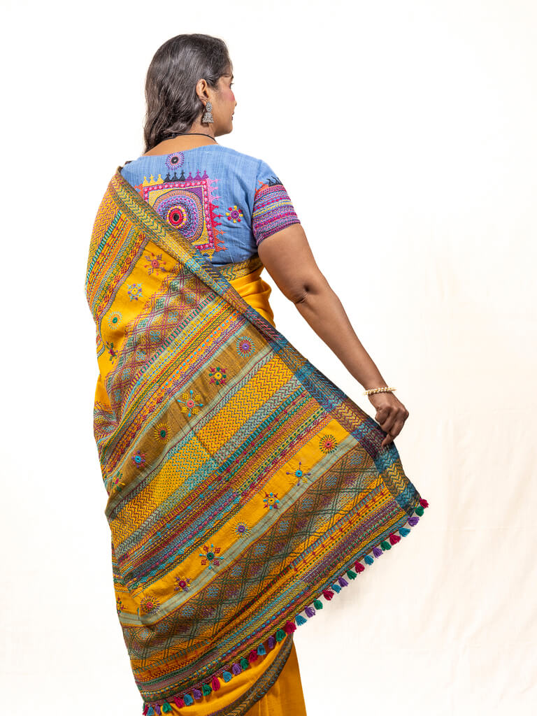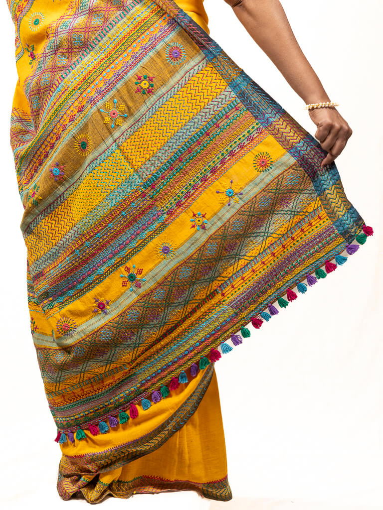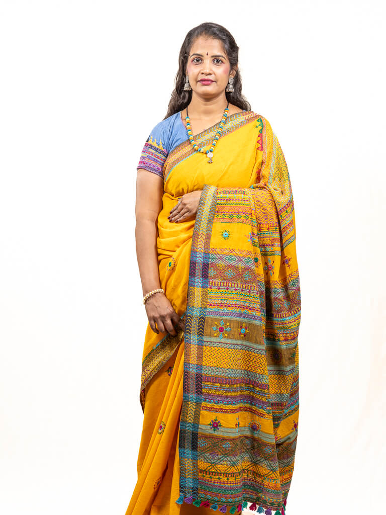 Khadi cotton yellow saree with Sandur lambani embroidery