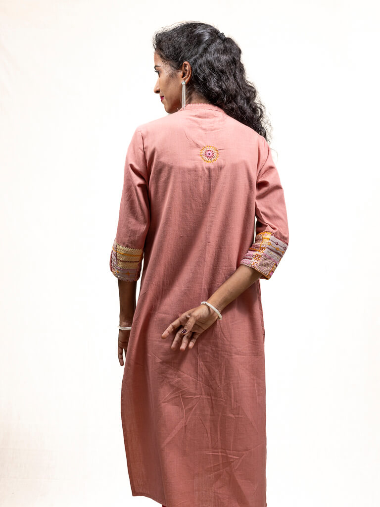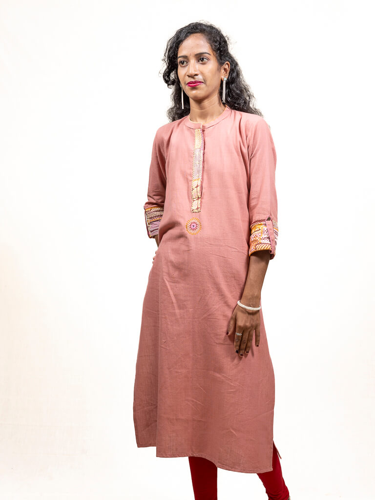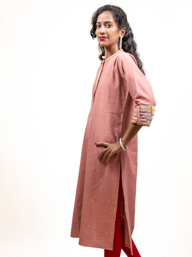 Pink khadi cotton kurta