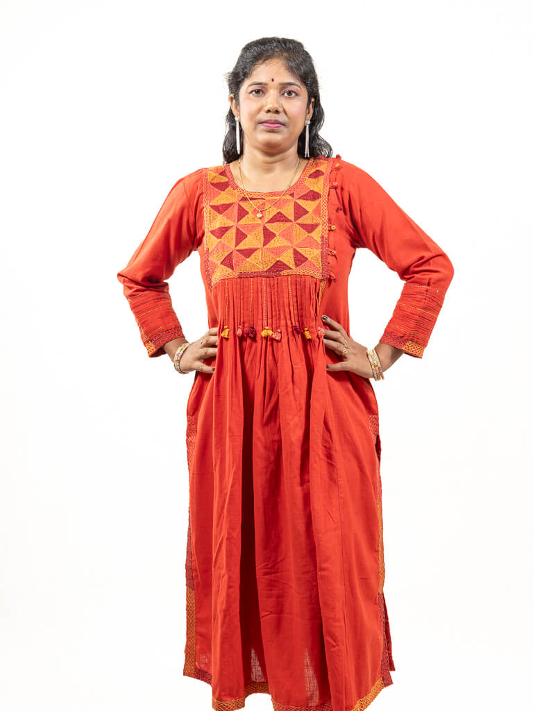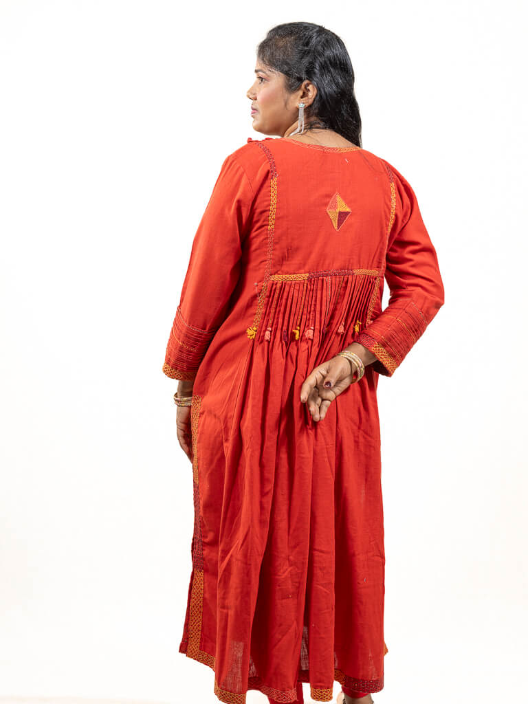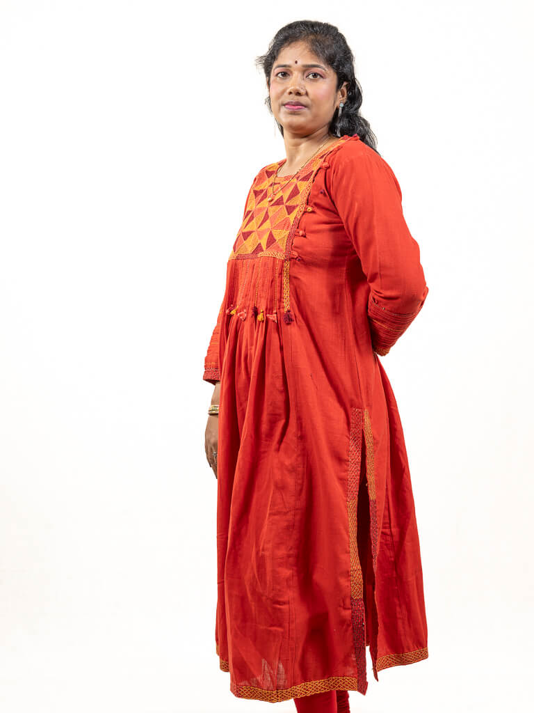 Red khadi cotton kurta